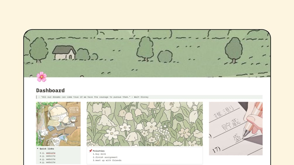Meet the Green Notion Dashboard Aesthetic Template – my digital helper for school, staying productive, and keeping life in order, all with a touch of nature's charm!