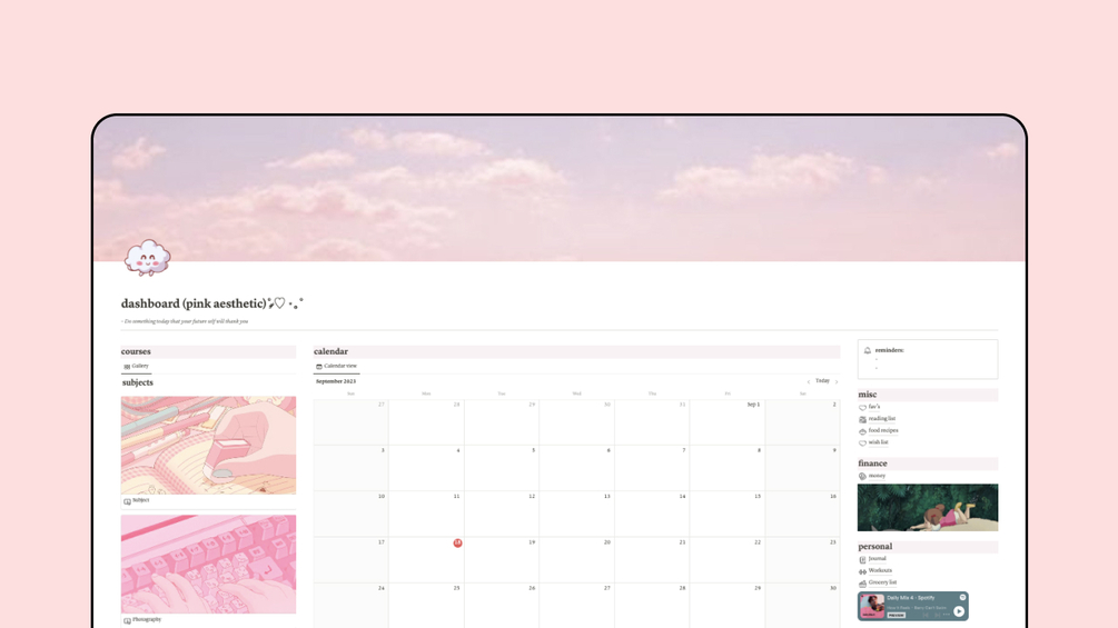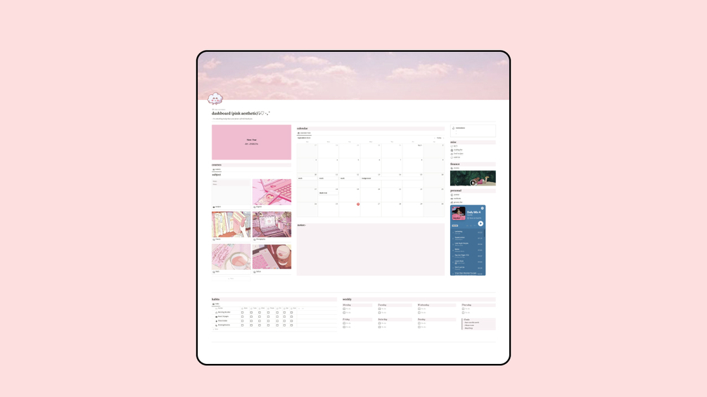Meet the Pink Notion Dashboard Aesthetic Template β my digital helper for school, staying productive, and keeping life in order!